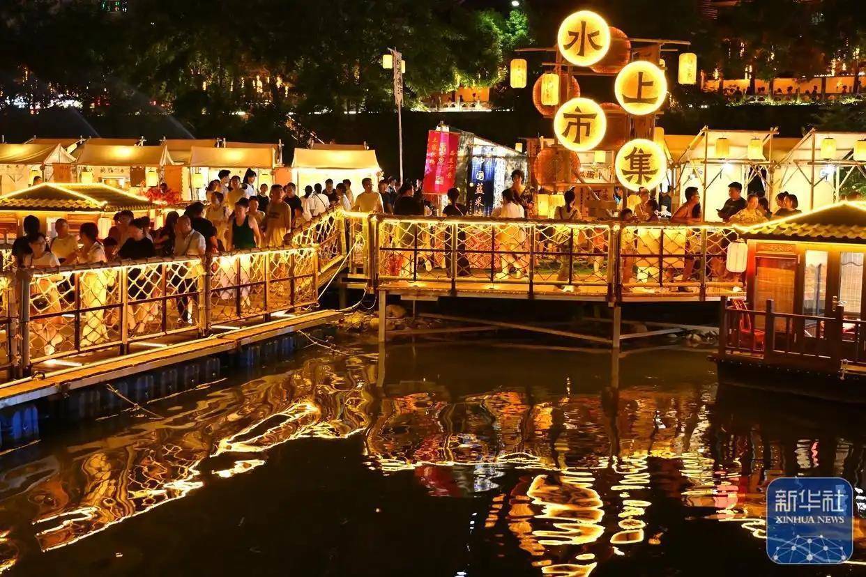 极目新闻记者了解到,宣恩县是湖北打造“新大集 新服务 新消费”三新县域商业的突出代表。当地以特色商业街区创建为抓手,以业态升级为引擎、场景创新为突破,成功培育出“一元摊”、水上集市等极具辨识度的特色市集品牌。每当夜幕降临,贡水河畔灯火璀璨、商贾云集,昔日宋代“一河夜色起,满城尽流金”的繁华图景在此生动重现,成为兼具文化体验与消费活力的城市新地标。
